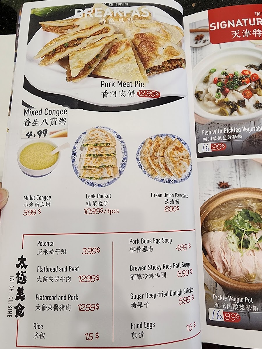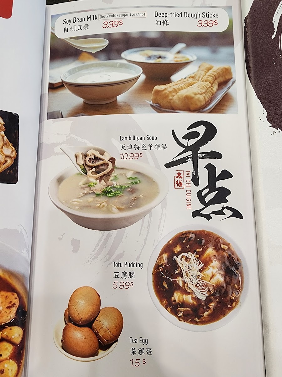 One of the standout features of Tai Chi Cuisine is its Special Breakfast offerings, where you can feast on Chinese savory crepes (煎饼果子) for just $9.99. This dish bursts with flavor, featuring a delicate yet crispy texture filled with savory ingredients that dance on your palate. Don't overlook the grilled cold noodles (烤冷面), a refreshing choice at $13.99, which perfectly balances taste and texture with every bite. Pair your meal with their homemade soy bean milk (自制热豆浆) for only $3.99, an earthy drink that complements the rich flavors of Chinese cuisine like no other. It's a must-try that many customers rave about!