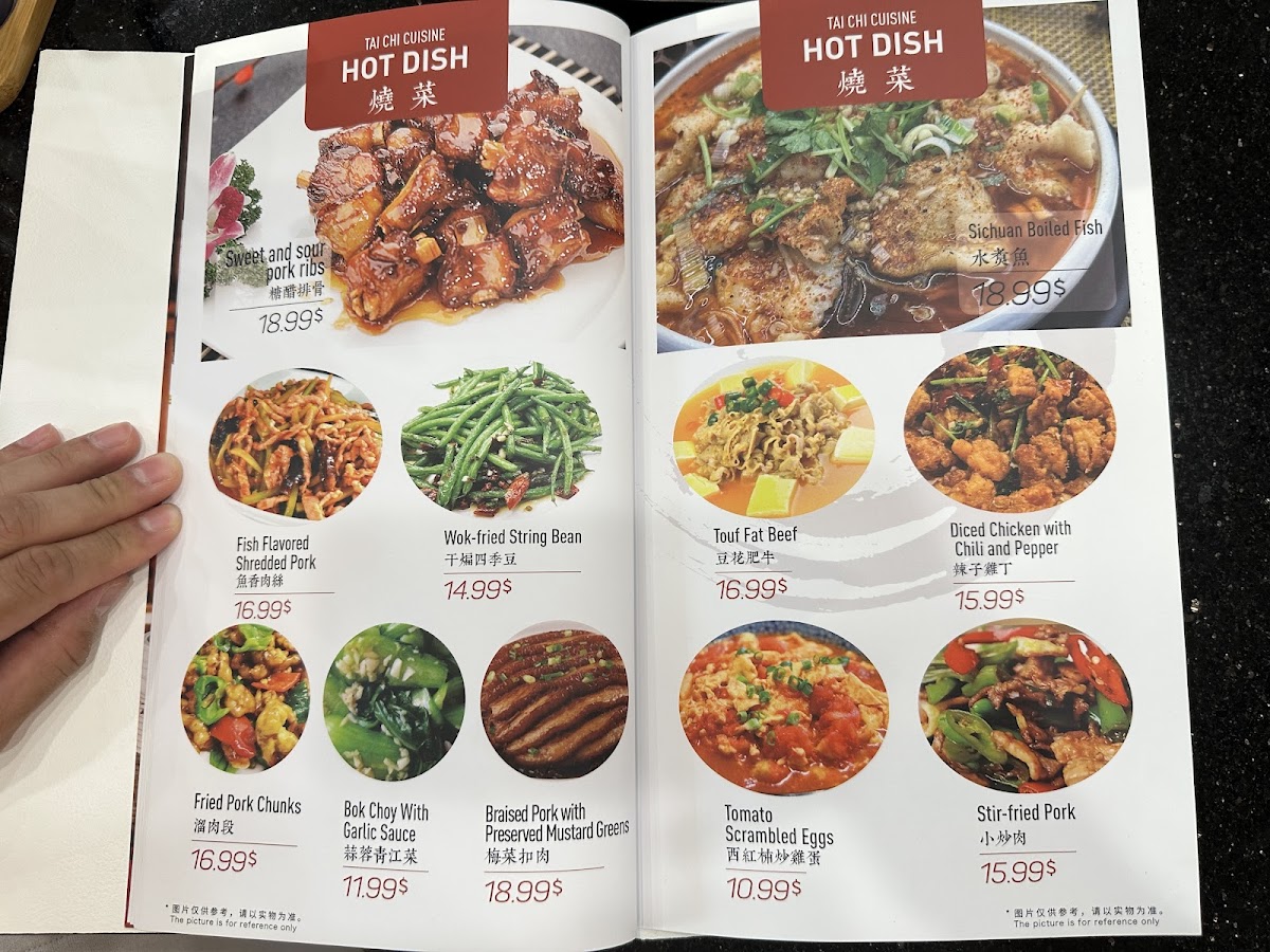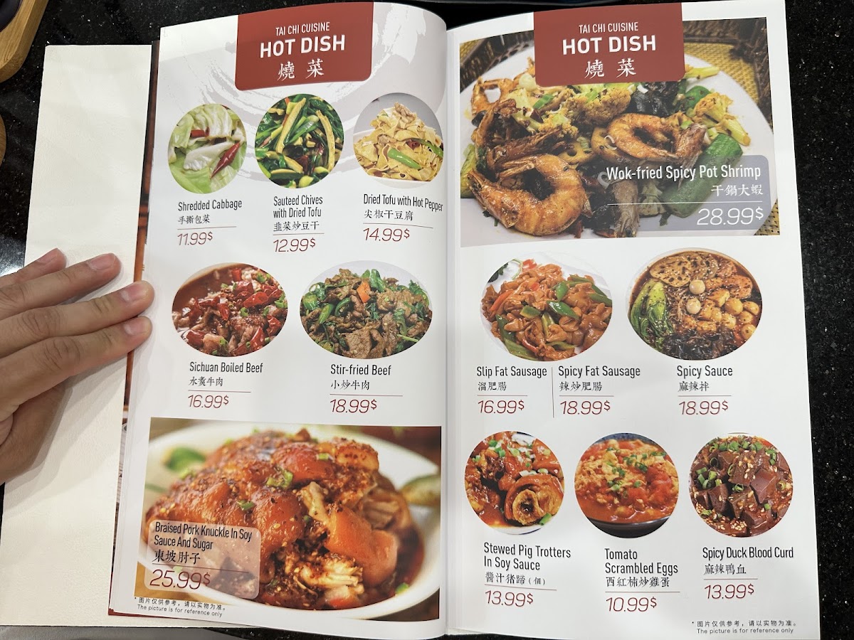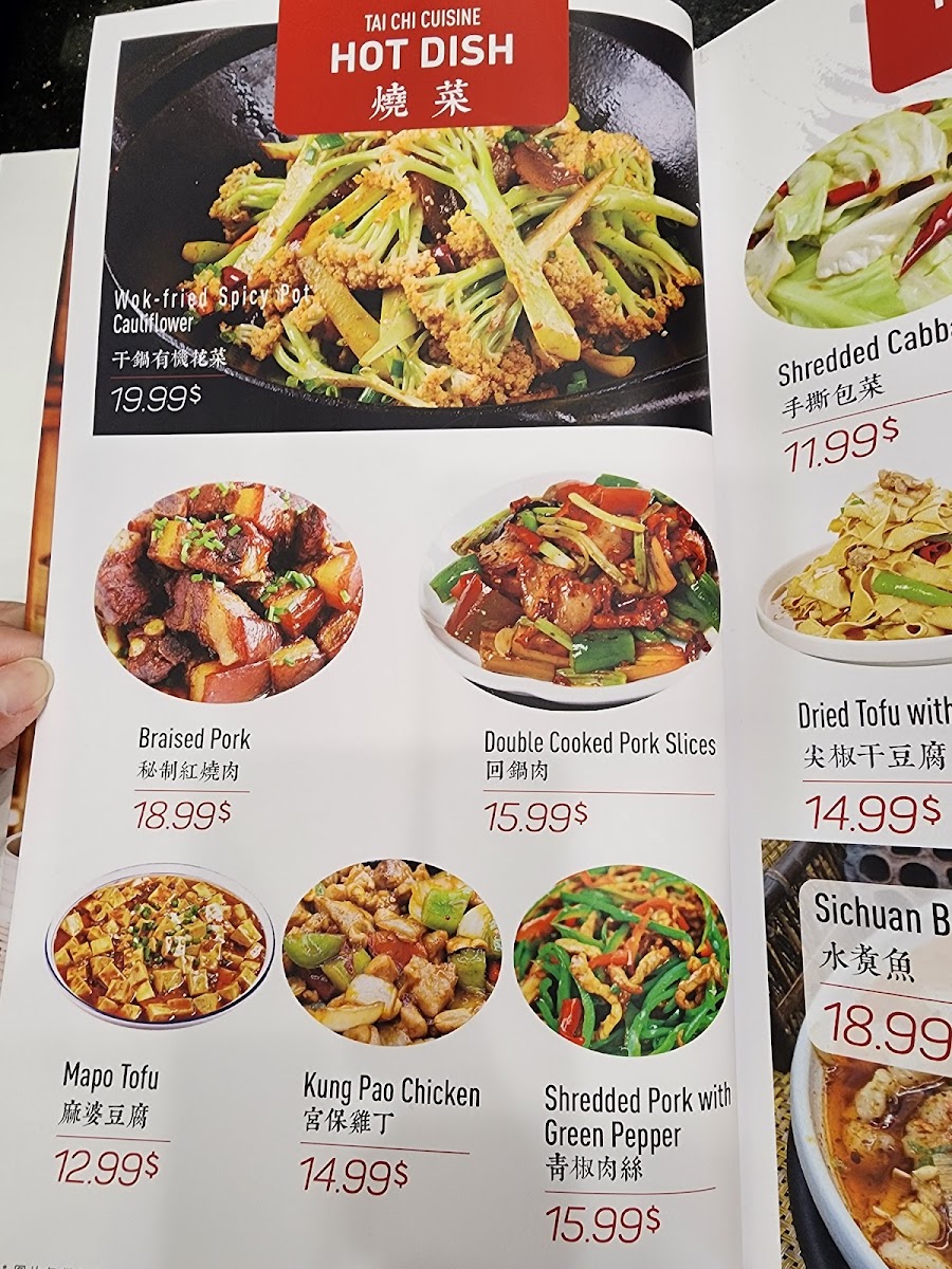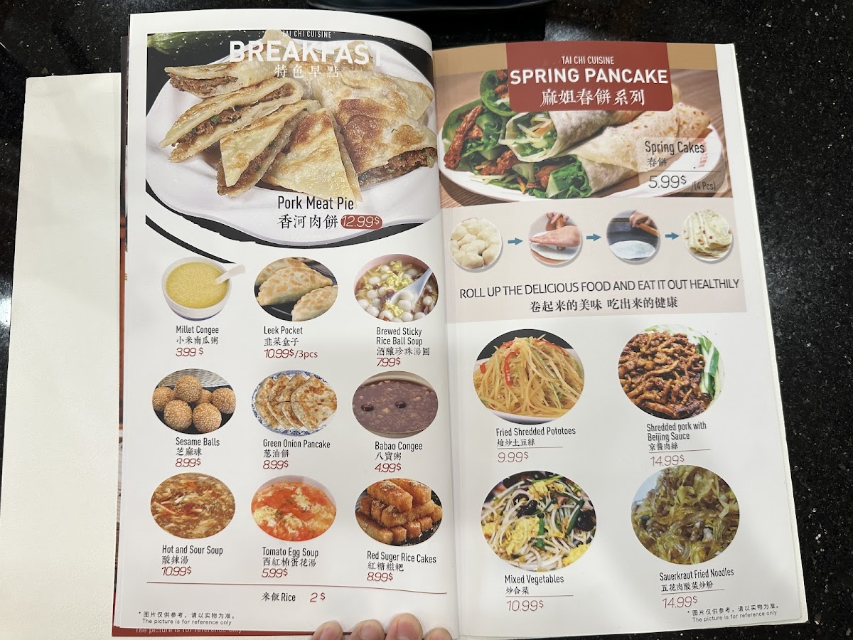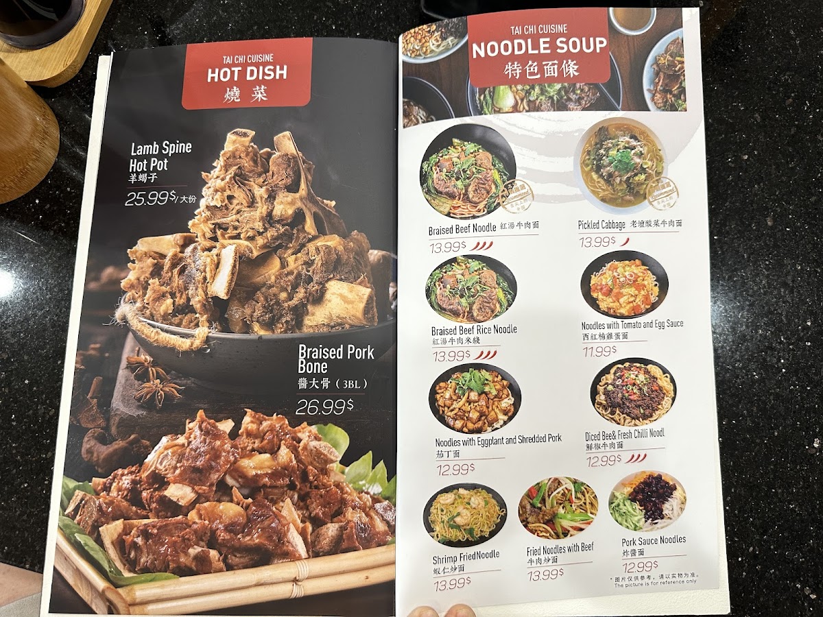 But the adventure doesn’t stop there. The Noodles/Over Rice section offers hearty delights like the braised beef noodle soup (红汤牛肉面) for $15.99 and the pork meat pie (香河肉饼) at $14.99, delivering generous portions that satisfy even the heartiest of appetites. Many customers have praised the tender meat and rich flavors, making it clear that the chefs at Tai Chi Cuisine know how to evoke a sense of genuine comfort food.